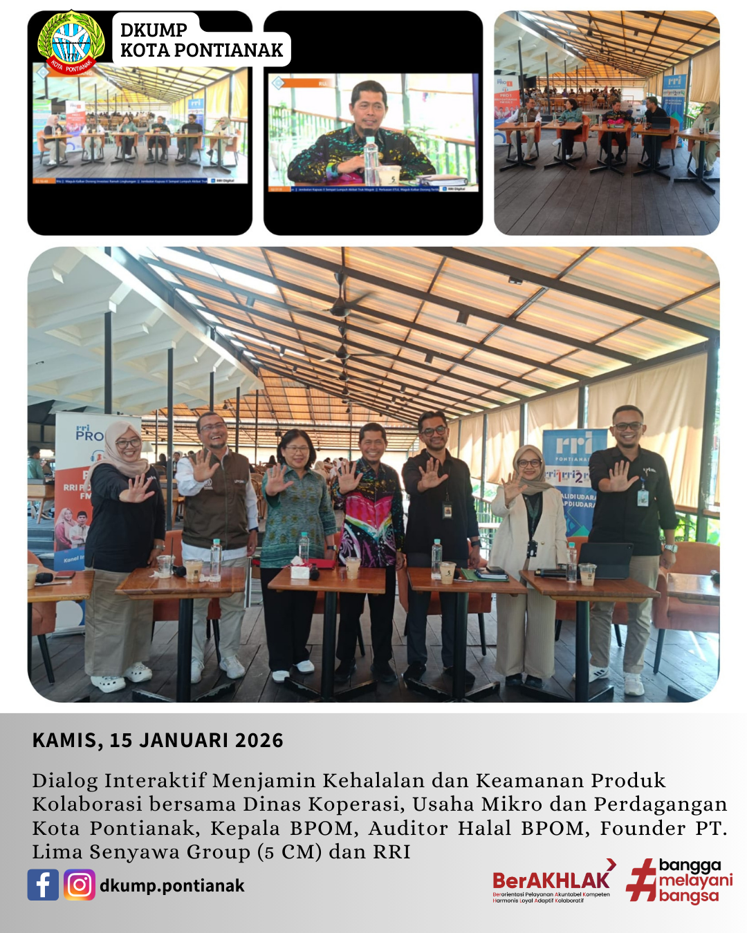 Kolaborasi bersama Dinas Koperasi, Usaha Mikro dan Perdagangan Kota Pontianak, Kepala BPOM, Auditor Halal BPOM, Founder PT. Lima Senyawa Group (5 CM) dan RRI