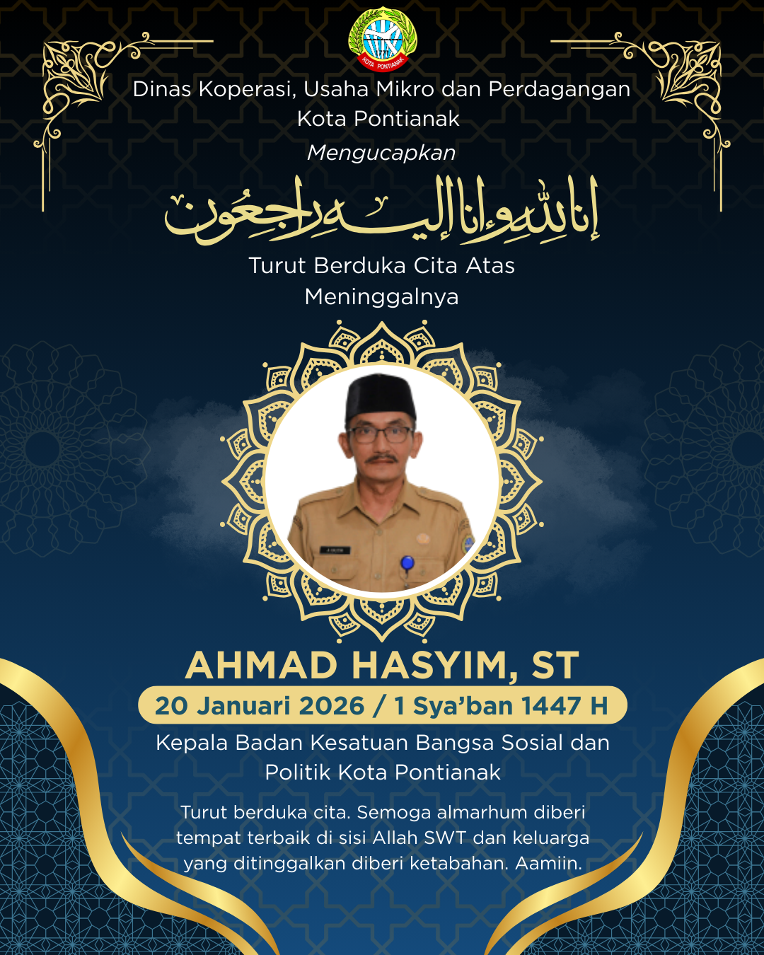 Dinas Koperasi, Usaha Mikro dan Perdagangan Kota Pontianak mengucapkan Turut Berduka Cita Atas Meninggalnya Bapak Ahmad Hasyim, ST