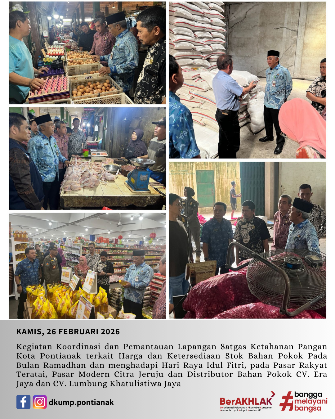 Kegiatan Koordinasi dan Pemantauan Lapangan Satgas Ketahanan Pangan Kota Pontianak terkait Harga dan Ketersediaan Stok Bahan Pokok Pada Bulan Ramadhan dan menghadapi Hari Raya Idul Fitri, pada Pasar Rakyat Teratai, Pasar Modern Citra Jeruju dan Distributor Bahan Pokok CV. Era Jaya dan CV. Lumbung Khatulistiwa Jaya