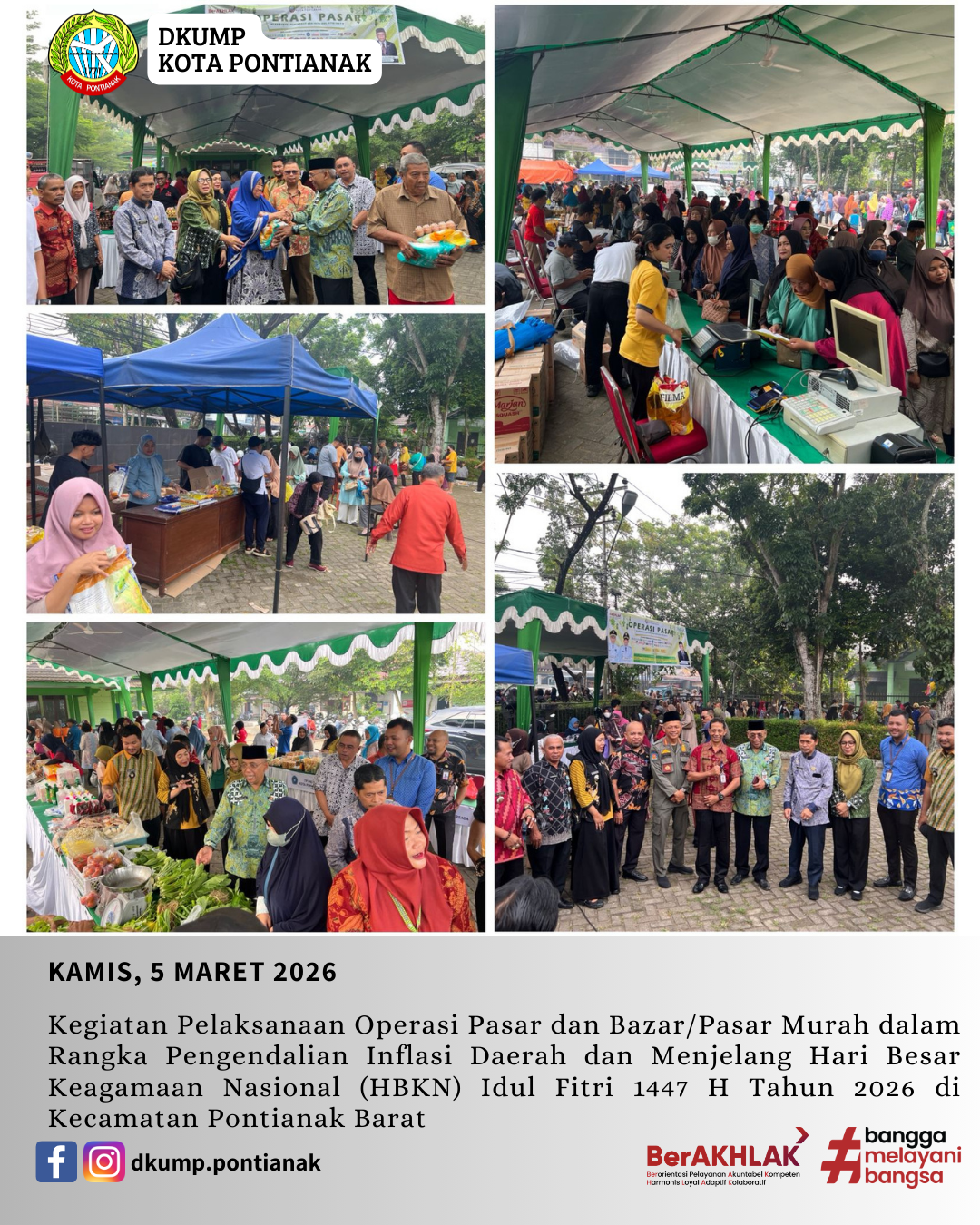 Kegiatan Pelaksanaan Operasi Pasar dan Bazar/Pasar Murah dalam Rangka Pengendalian Inflasi Daerah dan Menjelang Hari Besar Keagamaan Nasional (HBKN) Idul Fitri 1447 H Tahun 2026 di Kecamatan Pontianak Barat