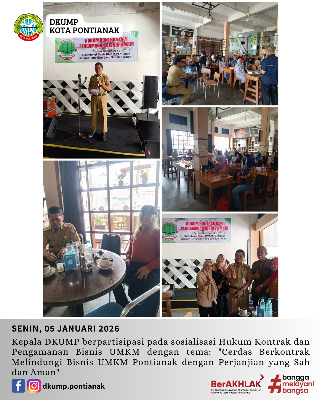 Kepala DKUMP berpartisipasi pada sosialisasi Hukum Kontrak dan Pengamanan Bisnis UMKM dengan tema: "Cerdas Berkontrak Melindungi Bisnis UMKM Pontianak dengan Perjanjian yang Sah dan Aman"