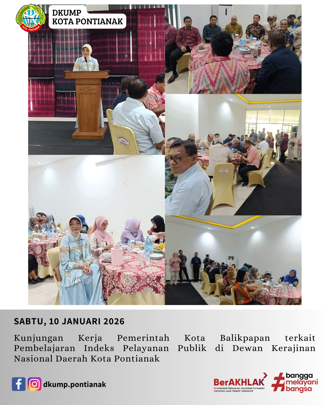 Kunjungan Kerja Pemerintah Kota Balikpapan terkait Pembelajaran Indeks Pelayanan Publik di Dewan Kerajinan Nasional Daerah Kota Pontianak.