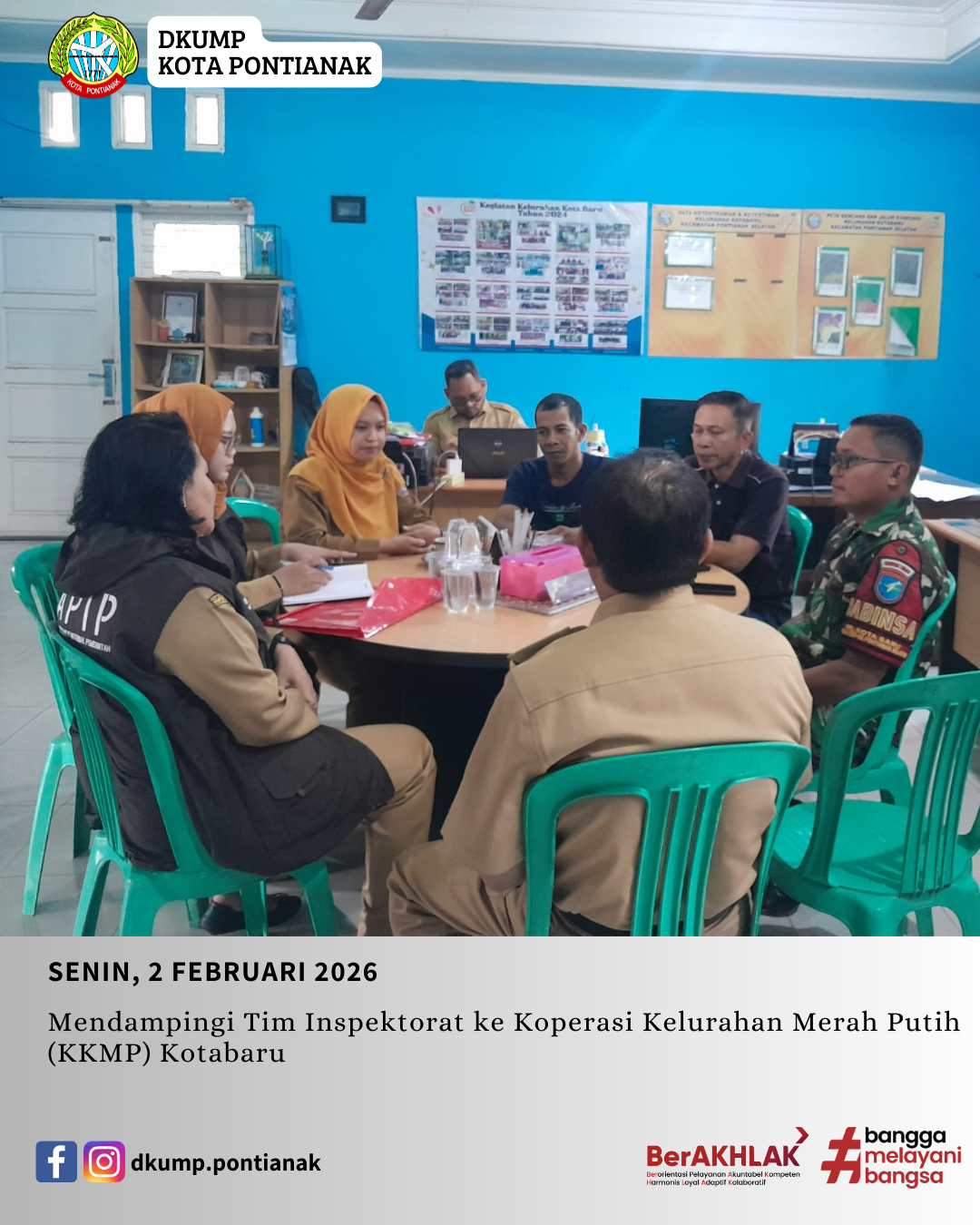 Mendampingi Tim Inspektorat ke Koperasi Kelurahan Merah Putih (KKMP) Kotabaru Oleh: admin diskumdag 04 Feb 2026 Senin, 2 Februari 2026 Mendampingi Tim Inspektorat ke Koperasi Kelurahan Merah Putih (KKMP) Kotabaru.