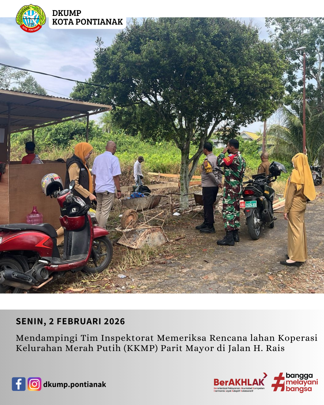 Mendampingi Tim Inspektorat Memeriksa Rencana lahan Koperasi Kelurahan Merah Putih (KKMP) Parit Mayor di Jalan H. Rais.