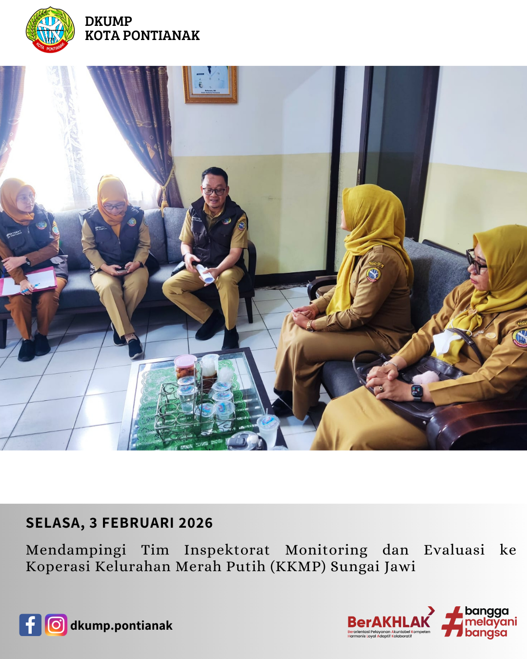 Mendampingi Tim Inspektorat Monitoring dan Evaluasi ke Koperasi Kelurahan Merah Putih (KKMP) Sungai Jawi Oleh: admin diskumdag 05 Feb 2026 Selasa, 3 Februari 2026 Mendampingi Tim Inspektorat Monitoring dan Evaluasi ke Koperasi Kelurahan Merah Putih (KKMP) Sungai Jawi.