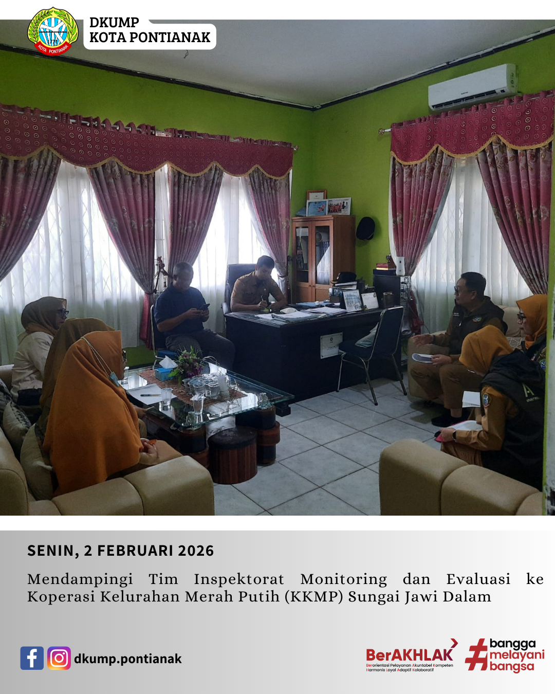 Mendampingi Tim Inspektorat Monitoring dan Evaluasi ke Koperasi Kelurahan Merah Putih (KKMP) Sungai Jawi Dalam Oleh: admin diskumdag 04 Feb 2026 Senin, 2 Februari 2026 Mendampingi Tim Inspektorat Monitoring dan Evaluasi ke Koperasi Kelurahan Merah Putih (KKMP) Sungai Jawi Dalam.