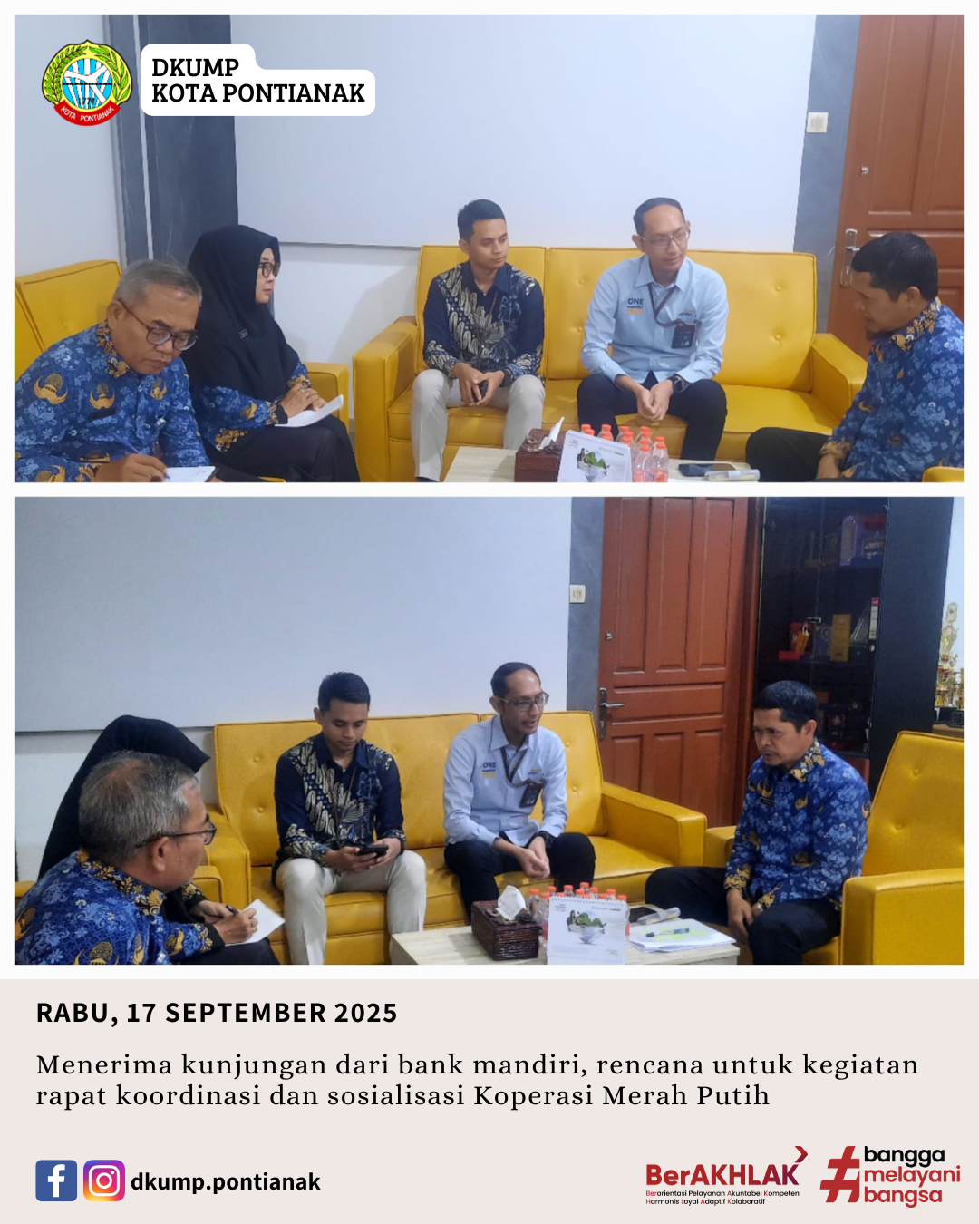 Menerima kunjungan dari bank mandiri, rencana untuk kegiatan rapat koordinasi dan sosialisasi Koperasi Merah Putih