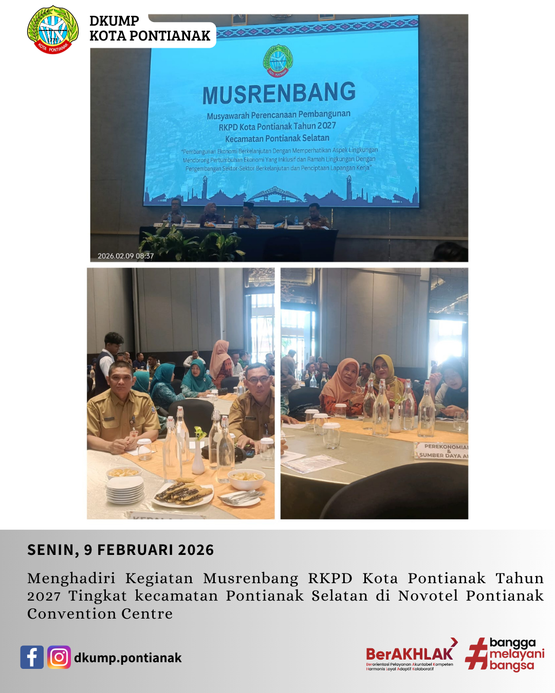 Menghadiri Kegiatan Musrenbang RKPD Kota Pontianak Tahun 2027 Tingkat kecamatan Pontianak Selatan di Novotel Pontianak Convention Centre.