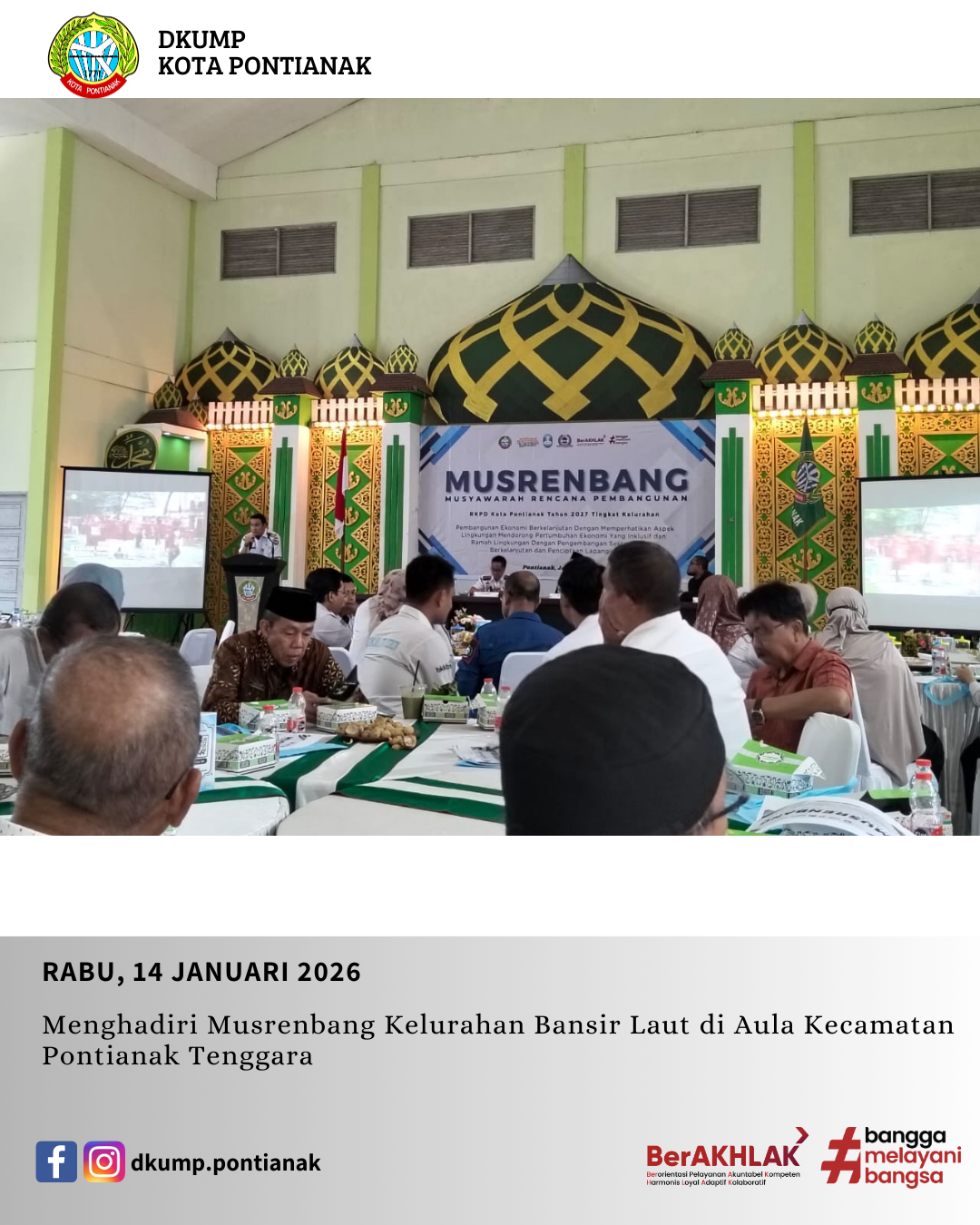 Menghadiri kegiatan Musrenbang RKPD Tahun Anggaran 2027 Tingkat Kelurahan Bansir Laut di Aula Kecamatan Pontianak Tenggara.