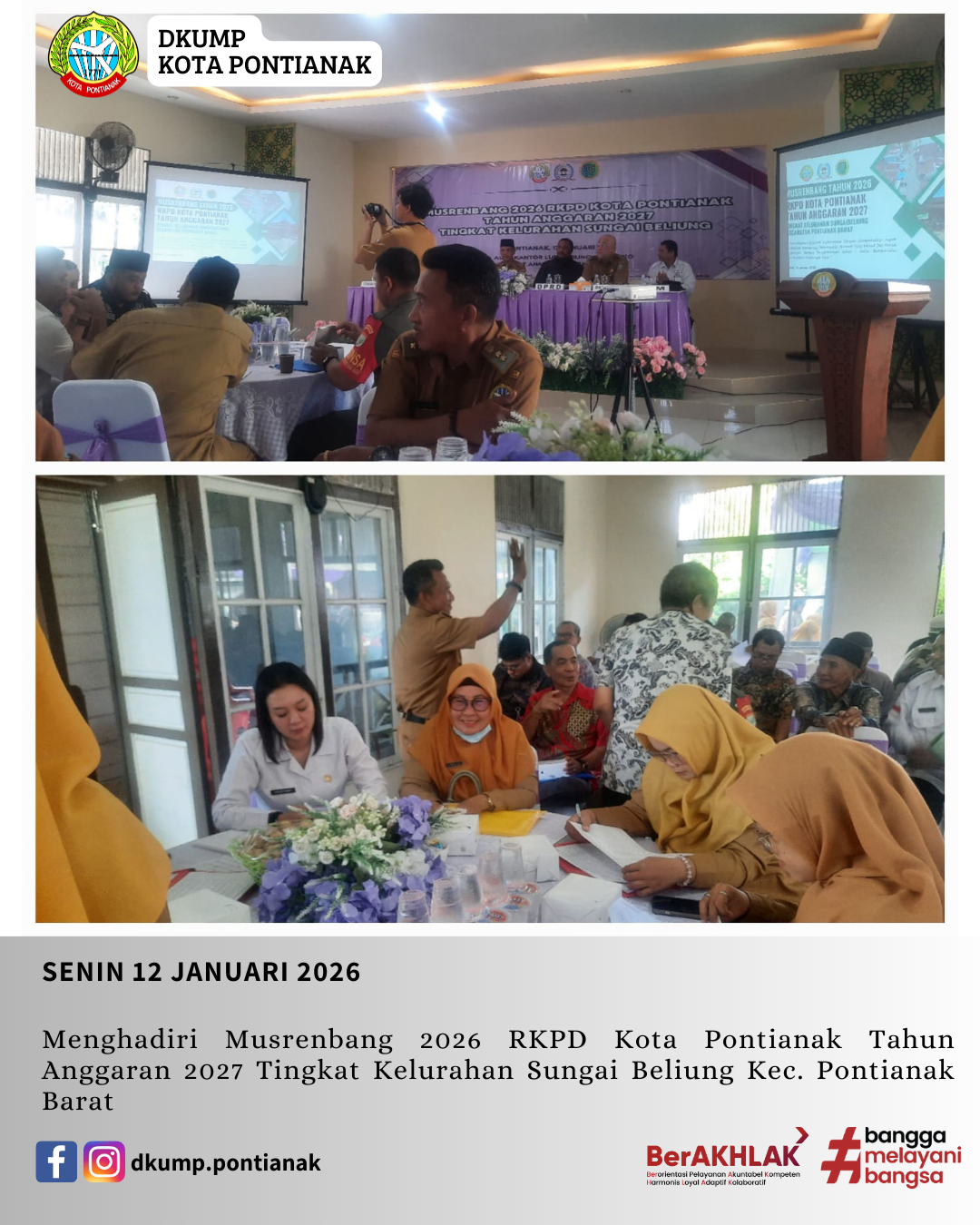 Menghadiri Musrenbang 2026 RKPD Kota Pontianak Tahun Anggaran 2027 Tingkat Kelurahan Sungai Beliung Kec. Pontianak Barat.