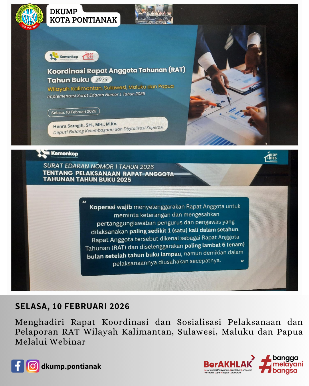 Menghadiri Rapat Koordinasi dan Sosialisasi Pelaksanaan dan Pelaporan RAT Wilayah Kalimantan, Sulawesi, Maluku dan Papua Melalui Webinar.