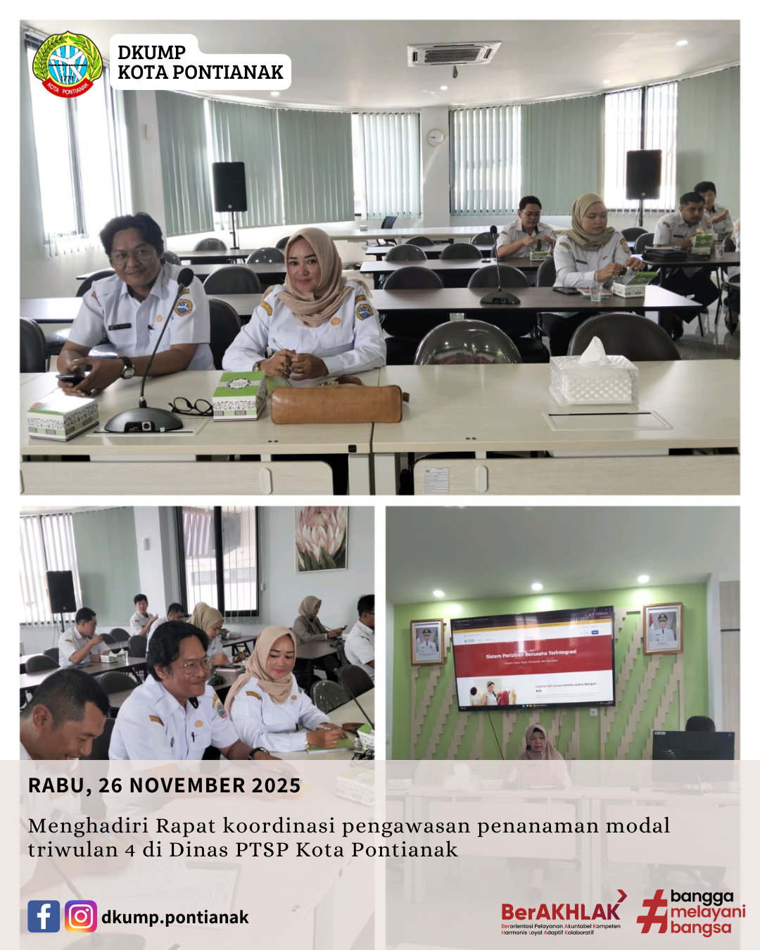 Menghadiri Rapat koordinasi pengawasan penanaman modal triwulan 4 di Dinas PTSP Kota Pontianak Oleh: Admin 26 Nov 2025 RABU, 26 NOVEMBER 2025 Menghadiri Rapat koordinasi pengawasan penanaman modal triwulan 4 di Dinas PTSP Kota Pontianak