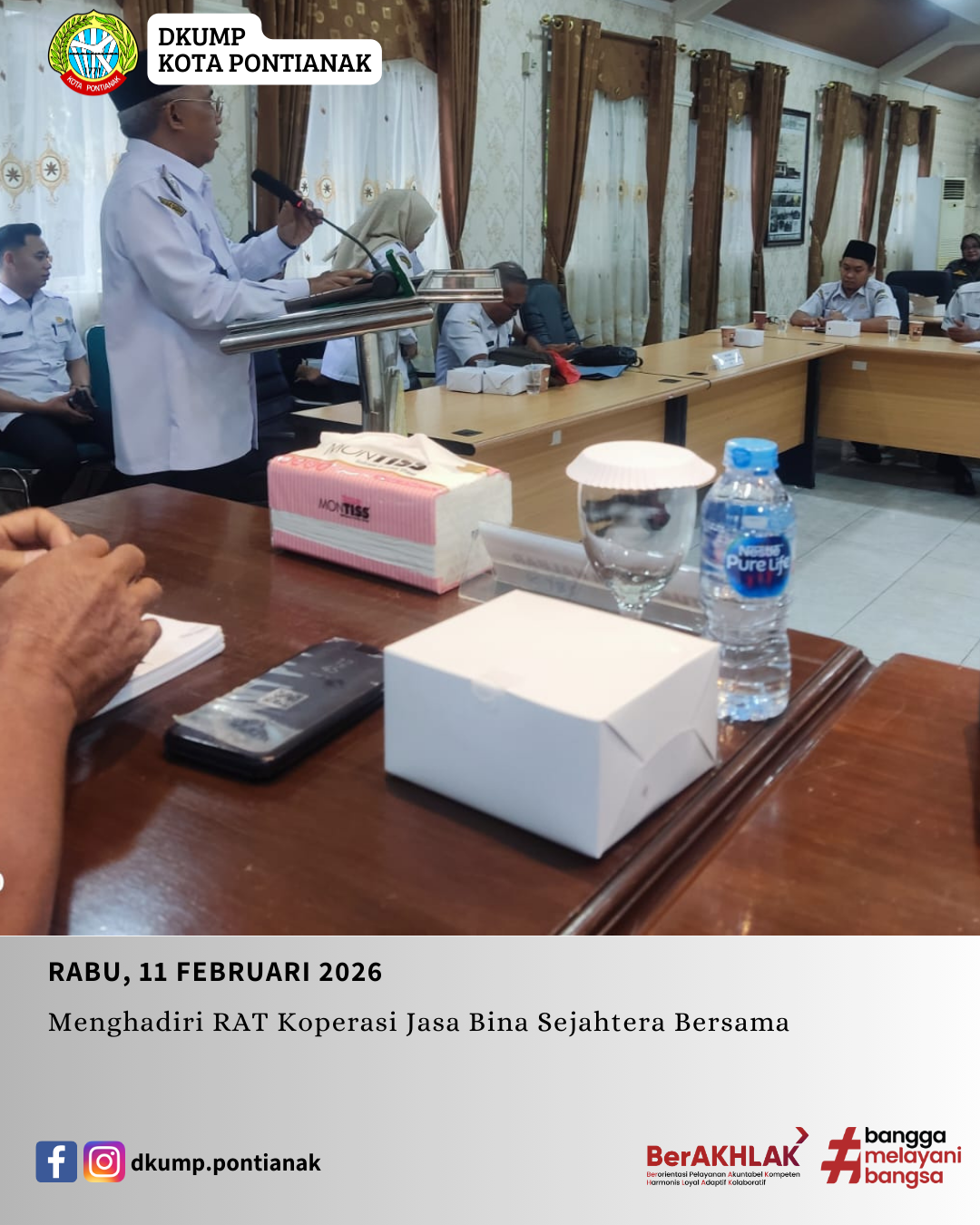 Menghadiri RAT Koperasi Jasa Bina Sejahtera Bersama Oleh: admin diskumdag 12 Feb 2026 Rabu, 11 Februari 2026 Menghadiri RAT Koperasi Jasa Bina Sejahtera Bersama.