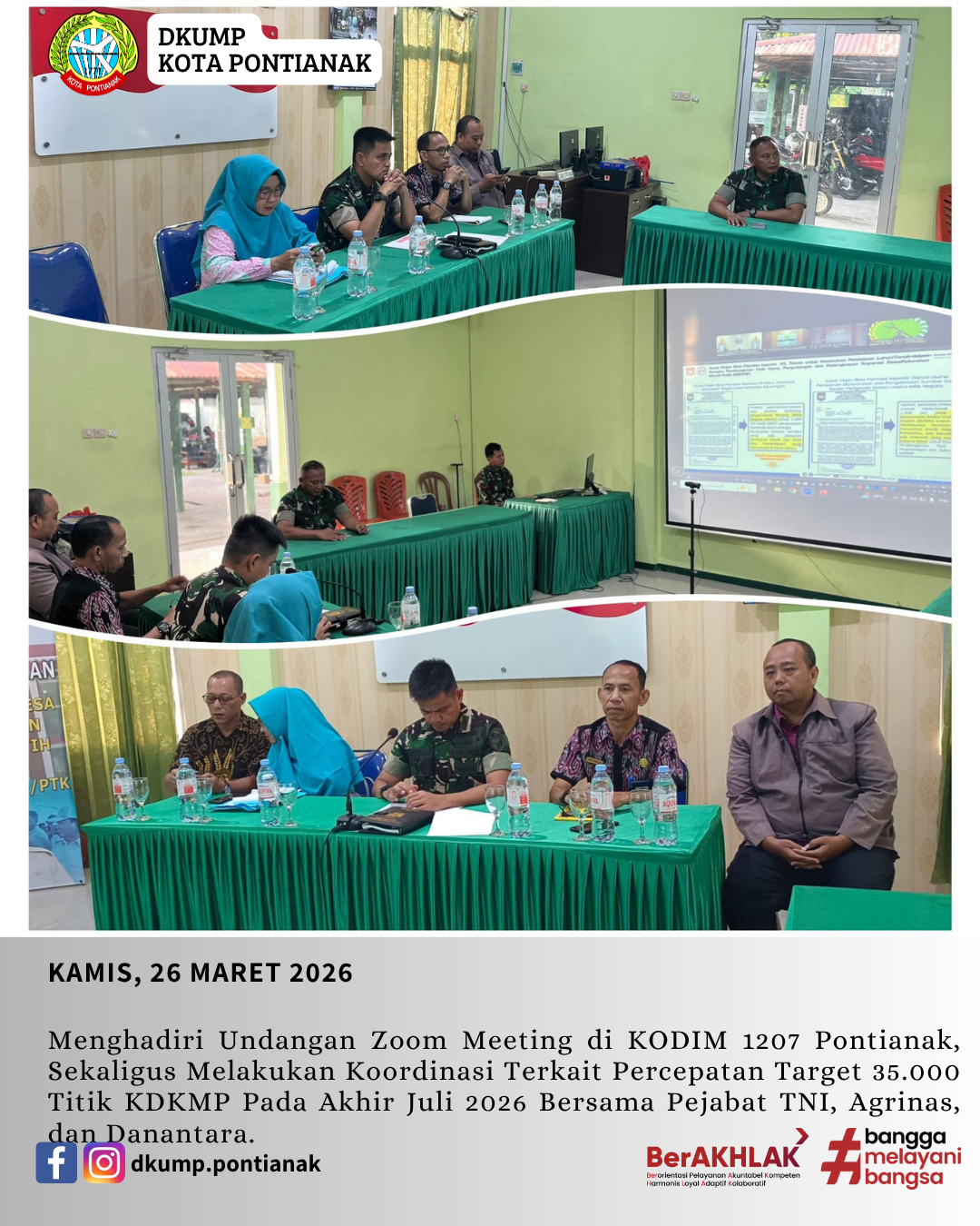 Menghadiri Undangan Zoom Meeting di KODIM 1207 Pontianak, Sekaligus Melakukan Koordinasi Terkait Percepatan Target 35.000 Titik KDKMP Pada Akhir Juli 2026 Bersama Pejabat TNI, Agrinas, dan Danantara.