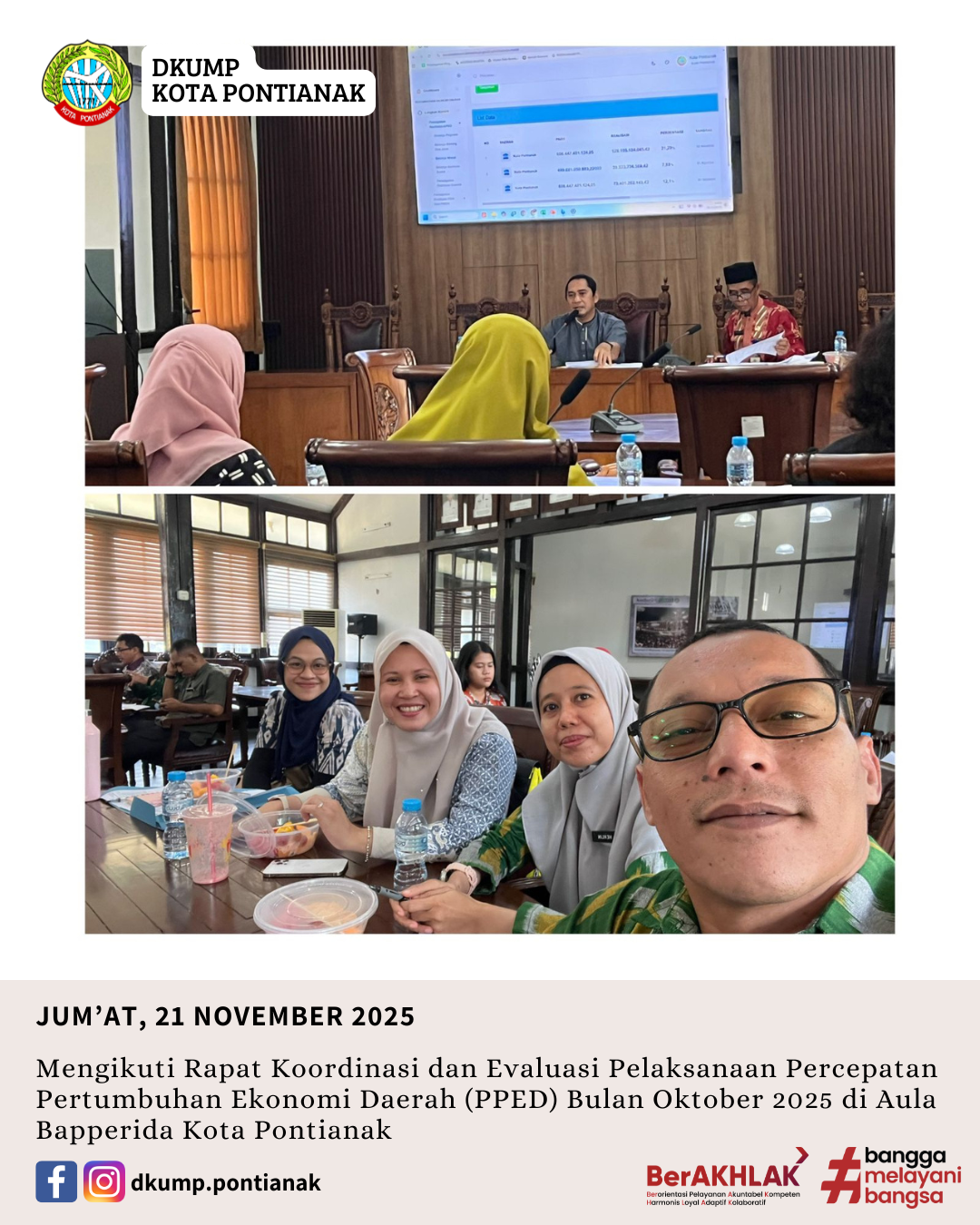 Mengikuti Rapat Koordinasi dan Evaluasi Pelaksanaan Percepatan Pertumbuhan Ekonomi Daerah (PPED) Bulan Oktober 2025 di Aula Bapperida Kota Pontianak