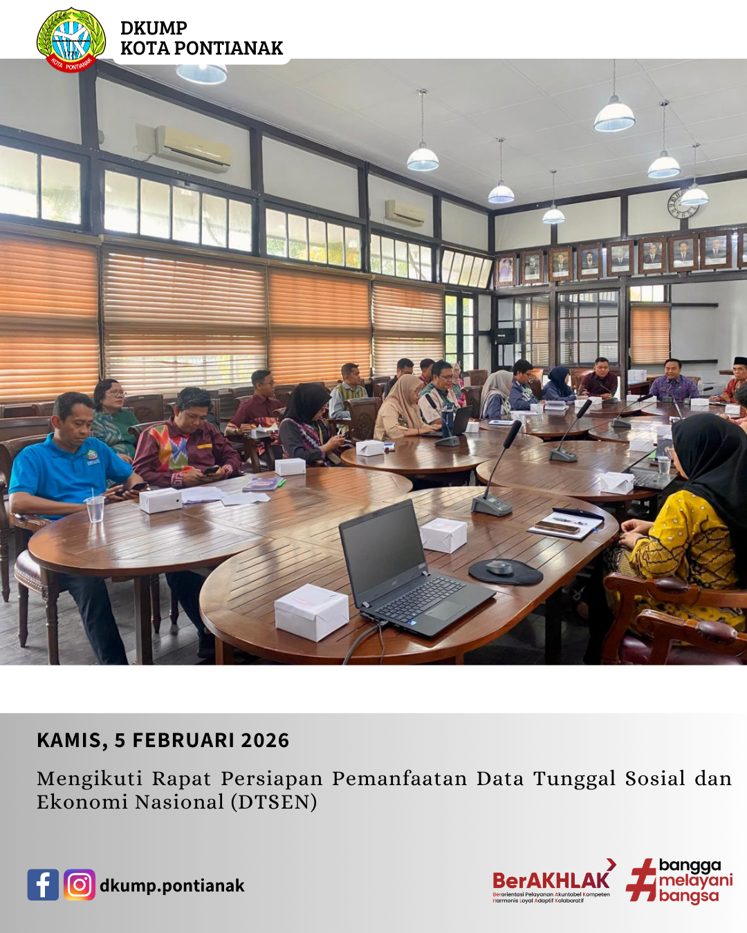 Mengikuti Rapat Persiapan Pemanfaatan Data Tunggal Sosial dan Ekonomi Nasional (DTSEN) Oleh: admin diskumdag 06 Feb 2026 Kamis, 5 Februari 2026 Mengikuti Rapat Persiapan Pemanfaatan Data Tunggal Sosial dan Ekonomi Nasional (DTSEN).