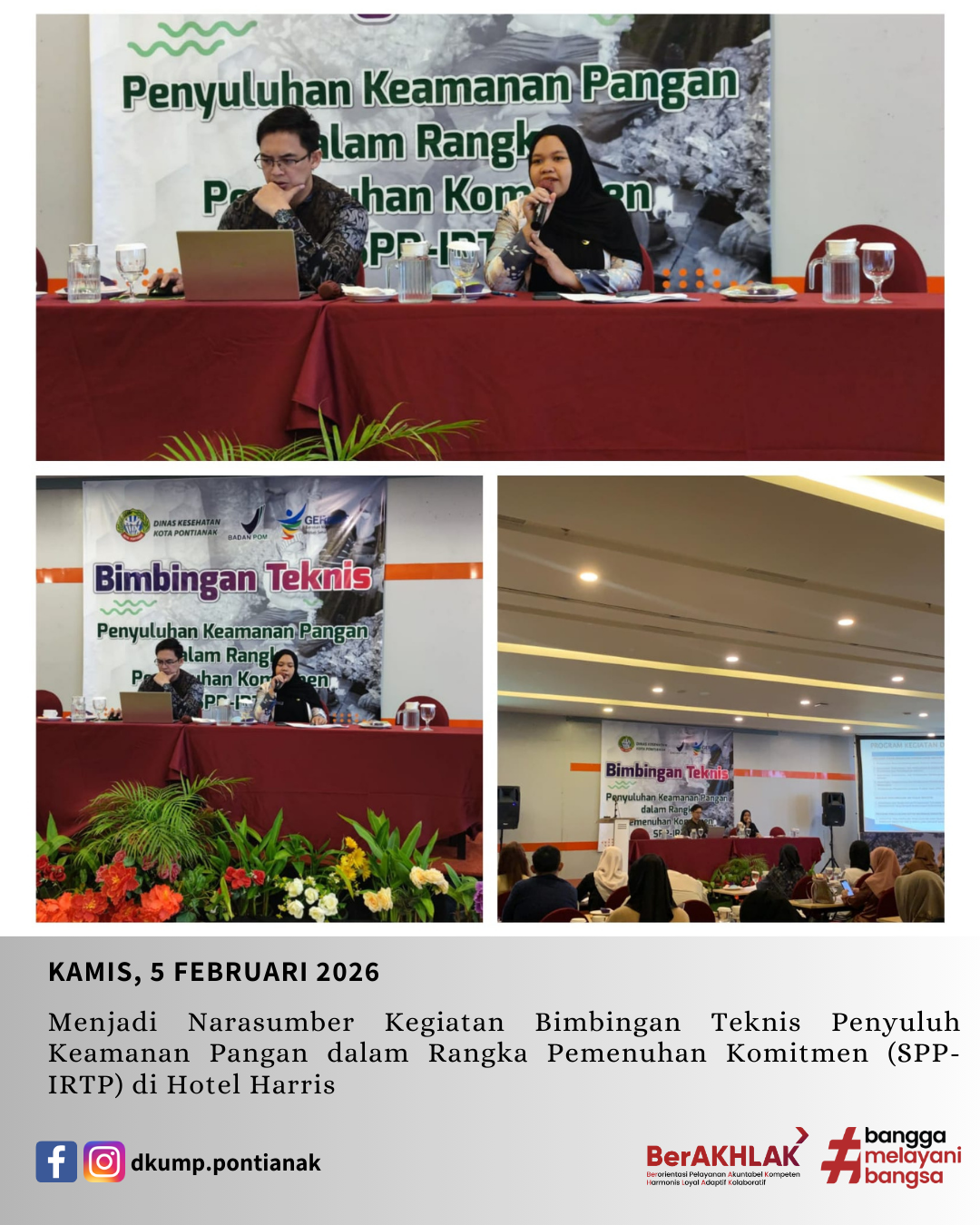 Menjadi Narasumber Kegiatan Bimbingan Teknis Penyuluh Keamanan Pangan dalam Rangka Pemenuhan Komitmen (SPP-IRTP) di Hotel Harris