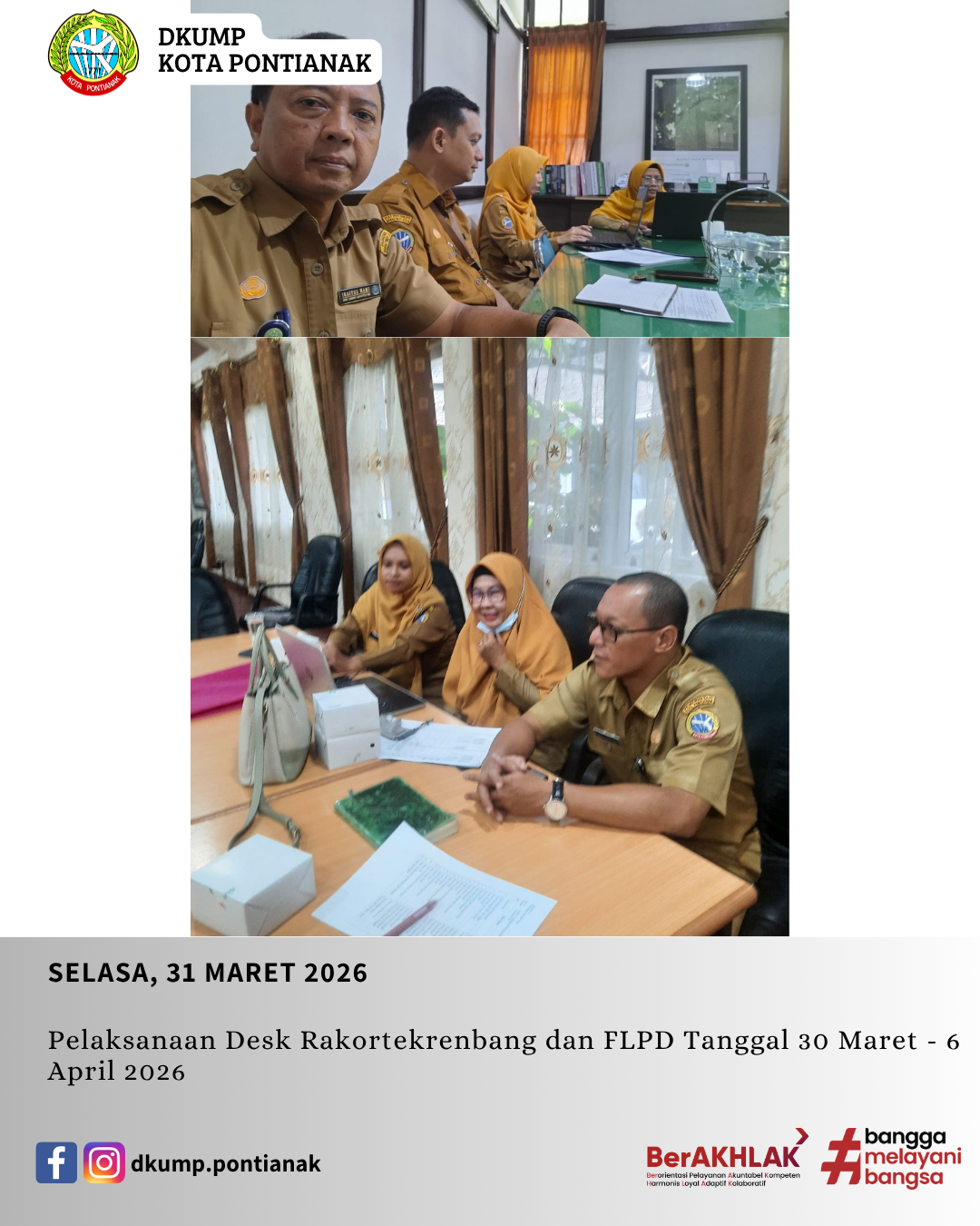 Pelaksanaan Desk Rakortekrenbang dan FLPD Tanggal 30 Maret - 6 April 2026 Oleh: admin diskumdag 07 Apr 2026 Selasa, 31 maret 2026 Pelaksanaan Desk Rakortekrenbang dan FLPD Tanggal 30 Maret - 6 April 2026.