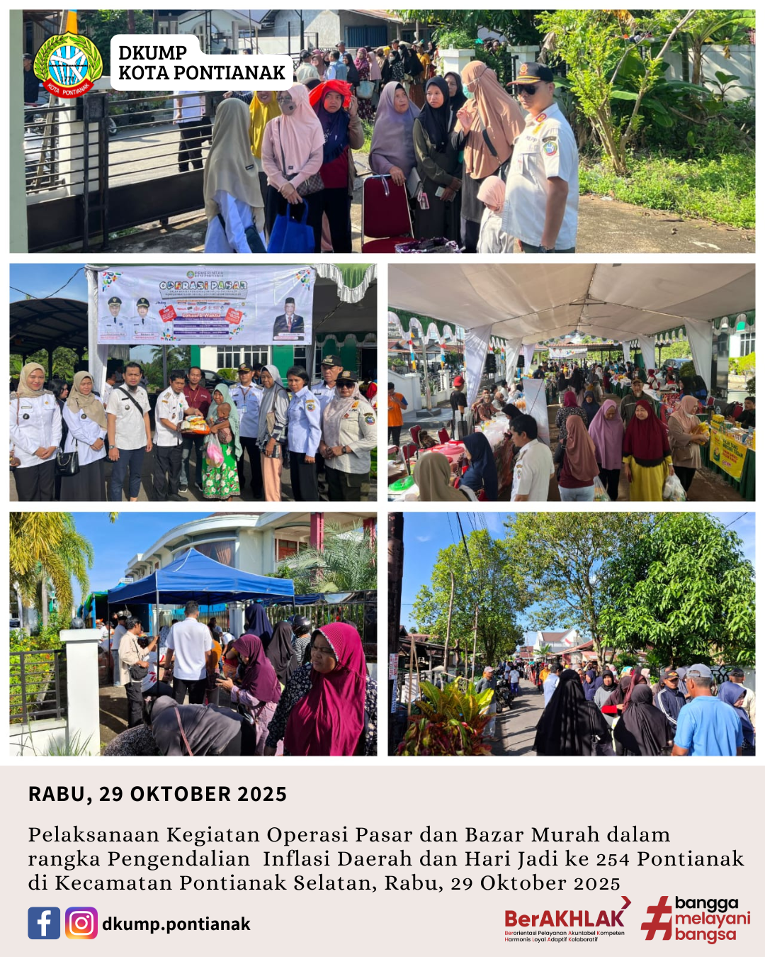 Pelaksanaan Kegiatan Operasi Pasar dan Bazar Murah dalam rangka Pengendalian Inflasi Daerah dan Hari Jadi ke 254 Pontianak di Kecamatan Pontianak Selatan, Rabu, 29 Oktober 2025