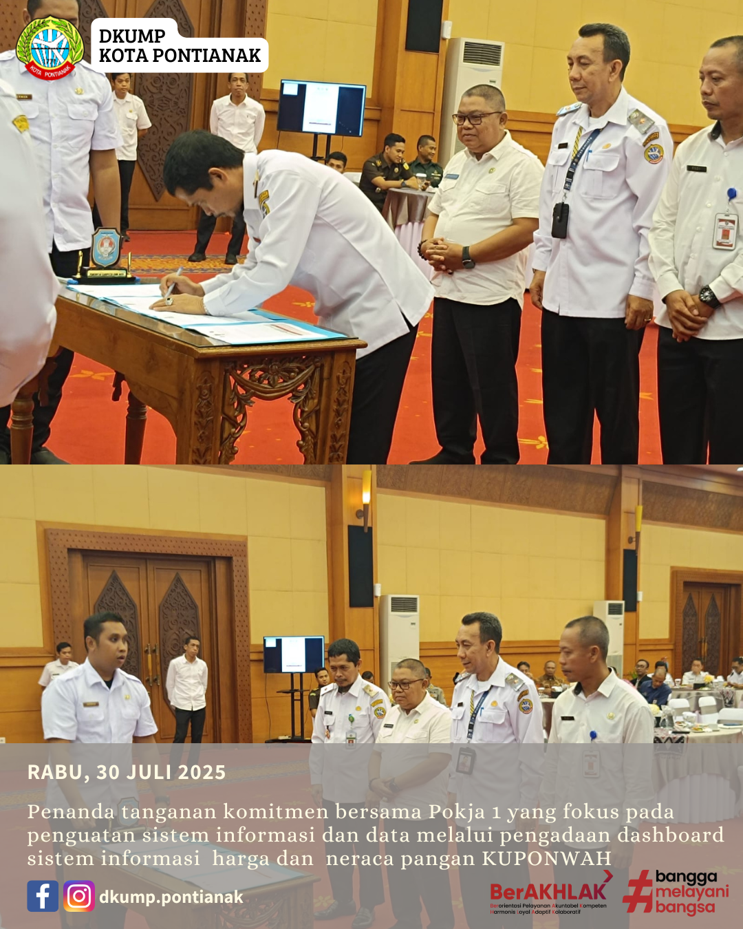 Penanda tanganan komitmen bersama Pokja 1 yang fokus pada penguatan sistem informasi dan data melalui pengadaan dashboard sistem informasi harga dan neraca pangan KUPONWAH