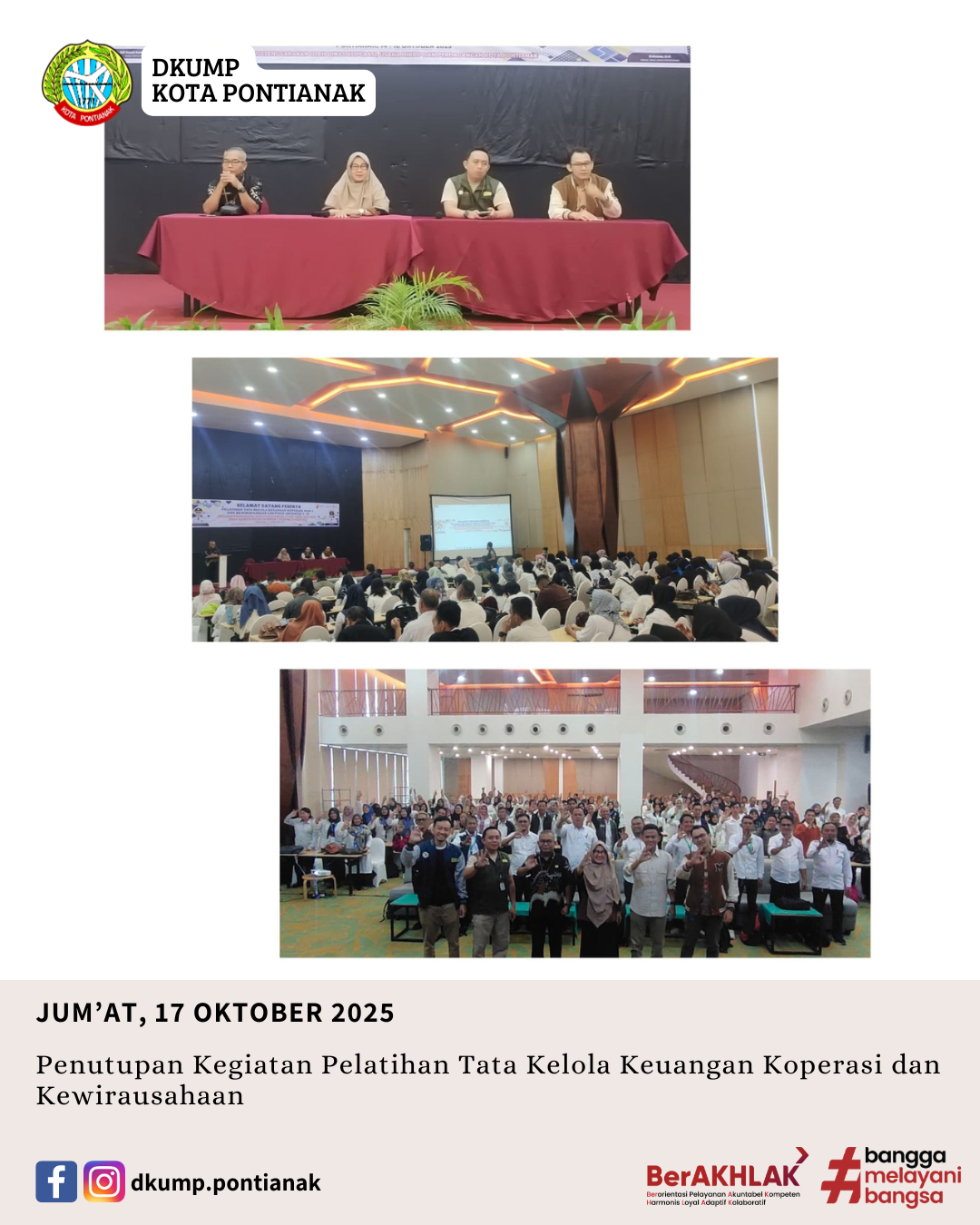 Penutupan Kegiatan Pelatihan Tata Kelola Keuangan Koperasi dan Kewirausahaan Oleh: Admin 17 Oct 2025 JUM’AT, 17 OKTOBER 2025 Penutupan Kegiatan Pelatihan Tata Kelola Keuangan Koperasi dan Kewirausahaan