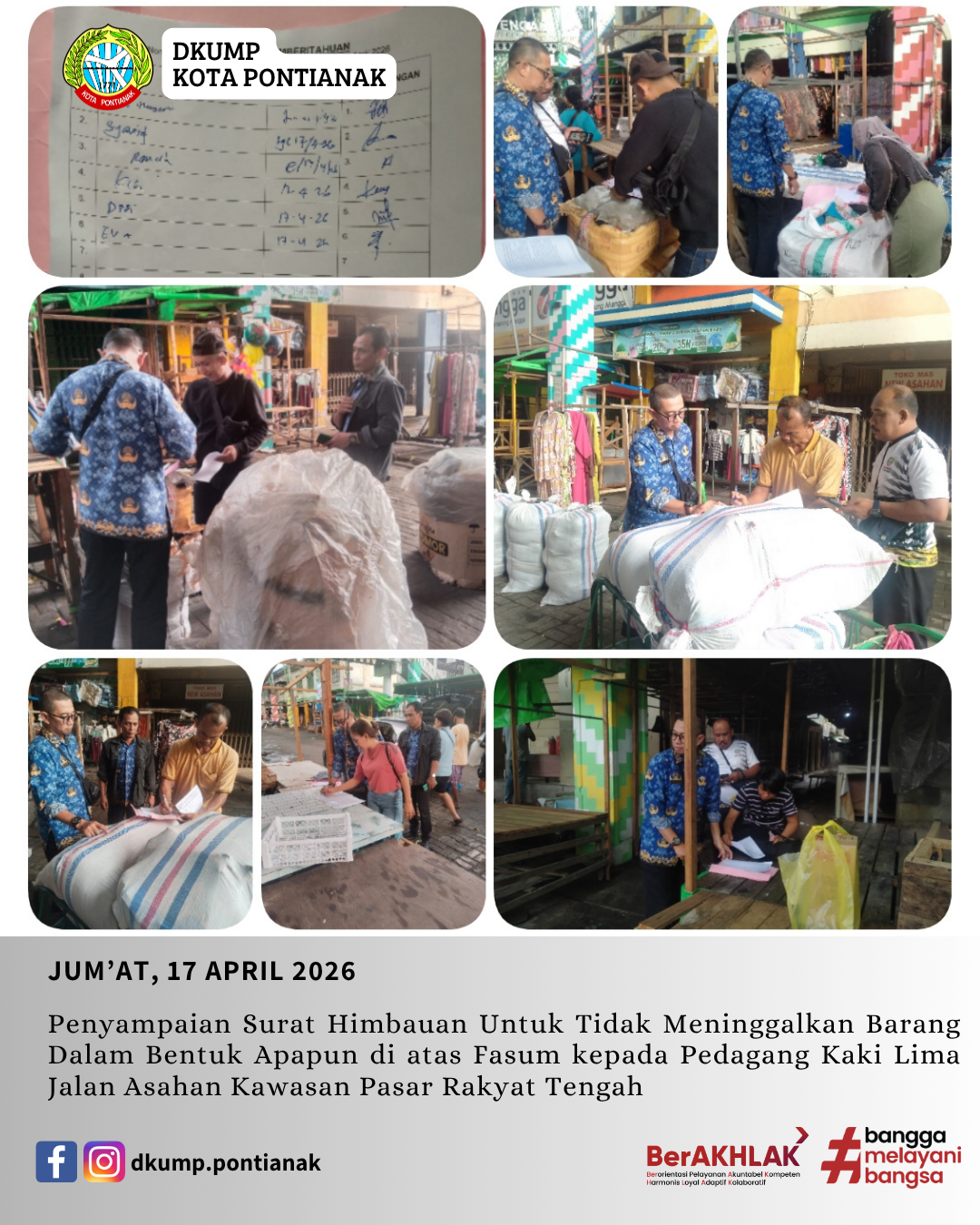 Penyampaian Surat Himbauan Untuk Tidak Meninggalkan Barang Dalam Bentuk Apapun di atas Fasum kepada Pedagang Kaki Lima Jalan Asahan Kawasan Pasar Rakyat Tengah.