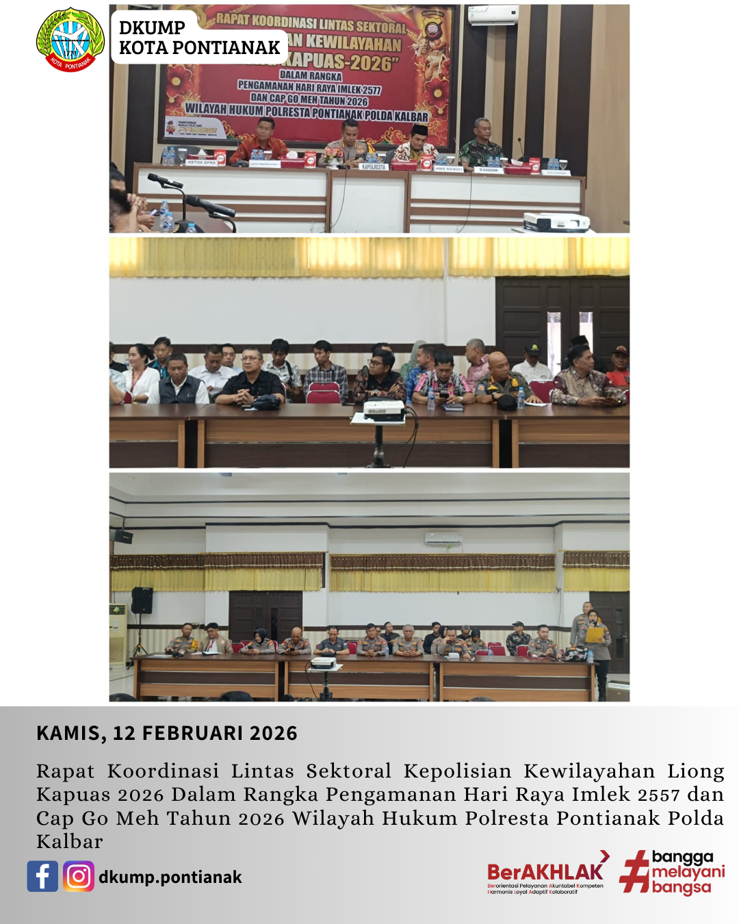 Rapat Koordinasi Lintas Sektoral Kepolisian Kewilayahan Liong Kapuas 2026 Dalam Rangka Pengamanan Hari Raya Imlek 2557 dan Cap Go Meh Tahun 2026 Wilayah Hukum Polresta Pontianak Polda Kalbar