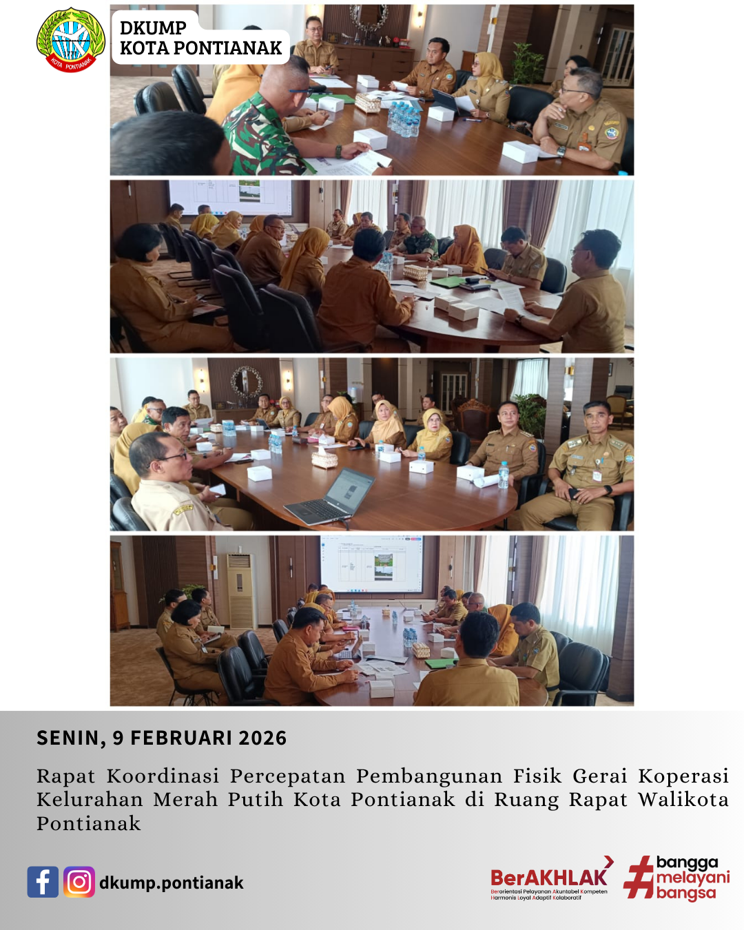 Rapat Koordinasi Percepatan Pembangunan Fisik Gerai Koperasi Kelurahan Merah Putih Kota Pontianak di Ruang Rapat Walikota Pontianak.