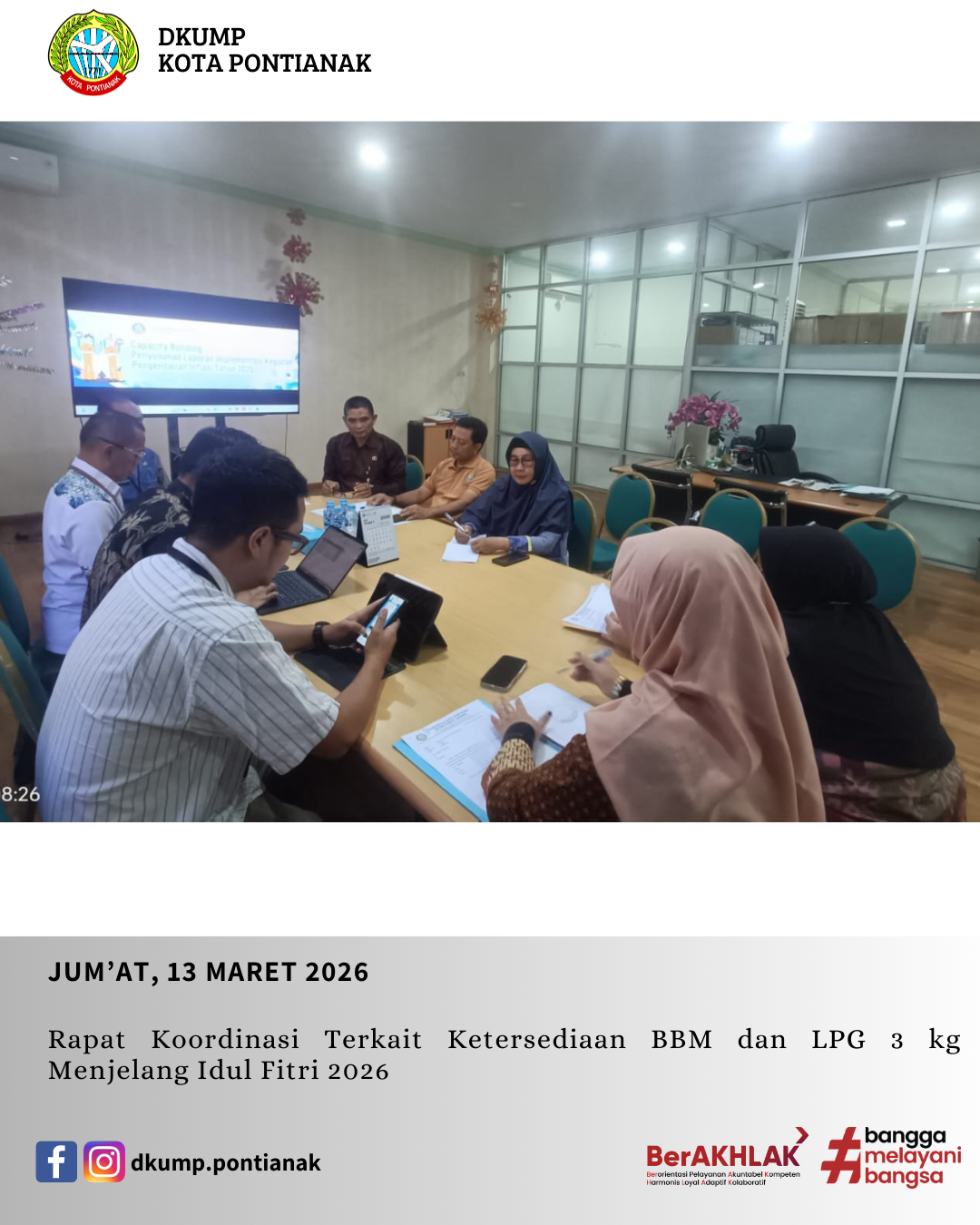Rapat Koordinasi Terkait Ketersediaan BBM dan LPG 3 kg Menjelang Idul Fitri 2026 Oleh: admin diskumdag 07 Apr 2026 Jum’at, 13 maret 2026 Rapat Koordinasi Terkait Ketersediaan BBM dan LPG 3 kg Menjelang Idul Fitri 2026.