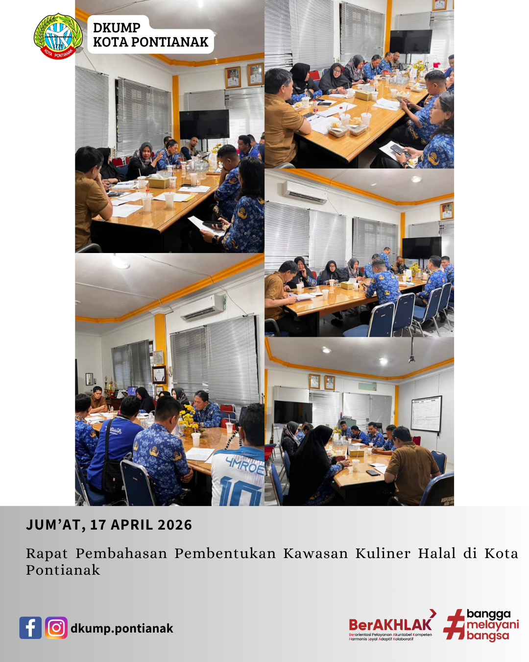 Rapat Pembahasan Pembentukan Kawasan Kuliner Halal di Kota Pontianak Oleh: admin diskumdag 17 Apr 2026 Jum’at, 17 April 2026 Rapat Pembahasan Pembentukan Kawasan Kuliner Halal di Kota Pontianak.