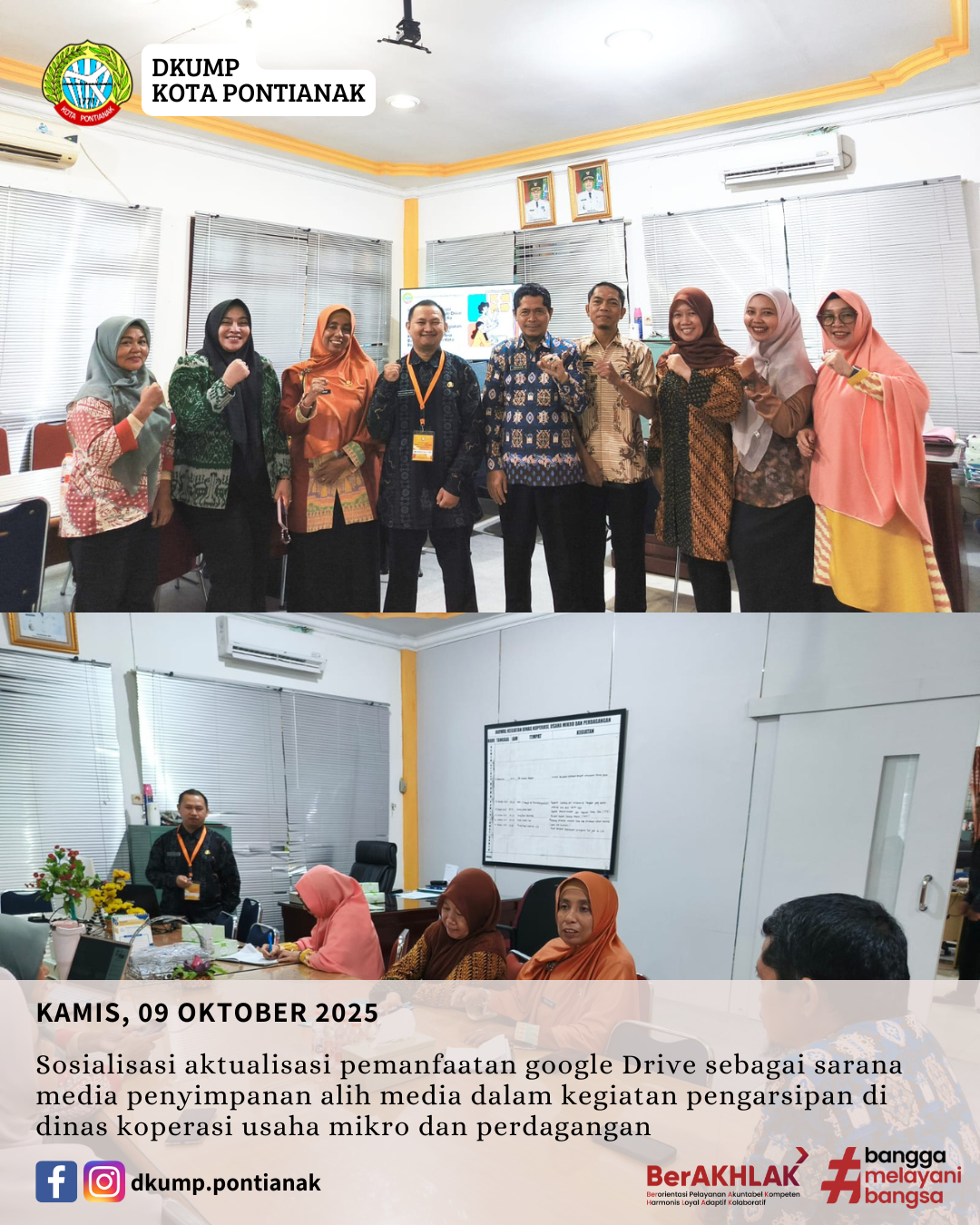 Sosialisasi aktualisasi pemanfaatan google Drive sebagai sarana media penyimpanan alih media dalam kegiatan pengarsipan di dinas koperasi usaha mikro dan perdagangan