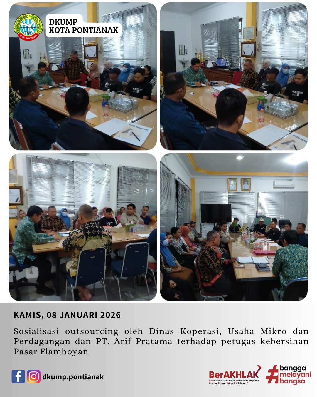 Sosialisasi outsourcing oleh Dinas Koperasi, Usaha Mikro dan Perdagangan dan PT. Arif Pratama terhadap petugas kebersihan Pasar Flamboyan