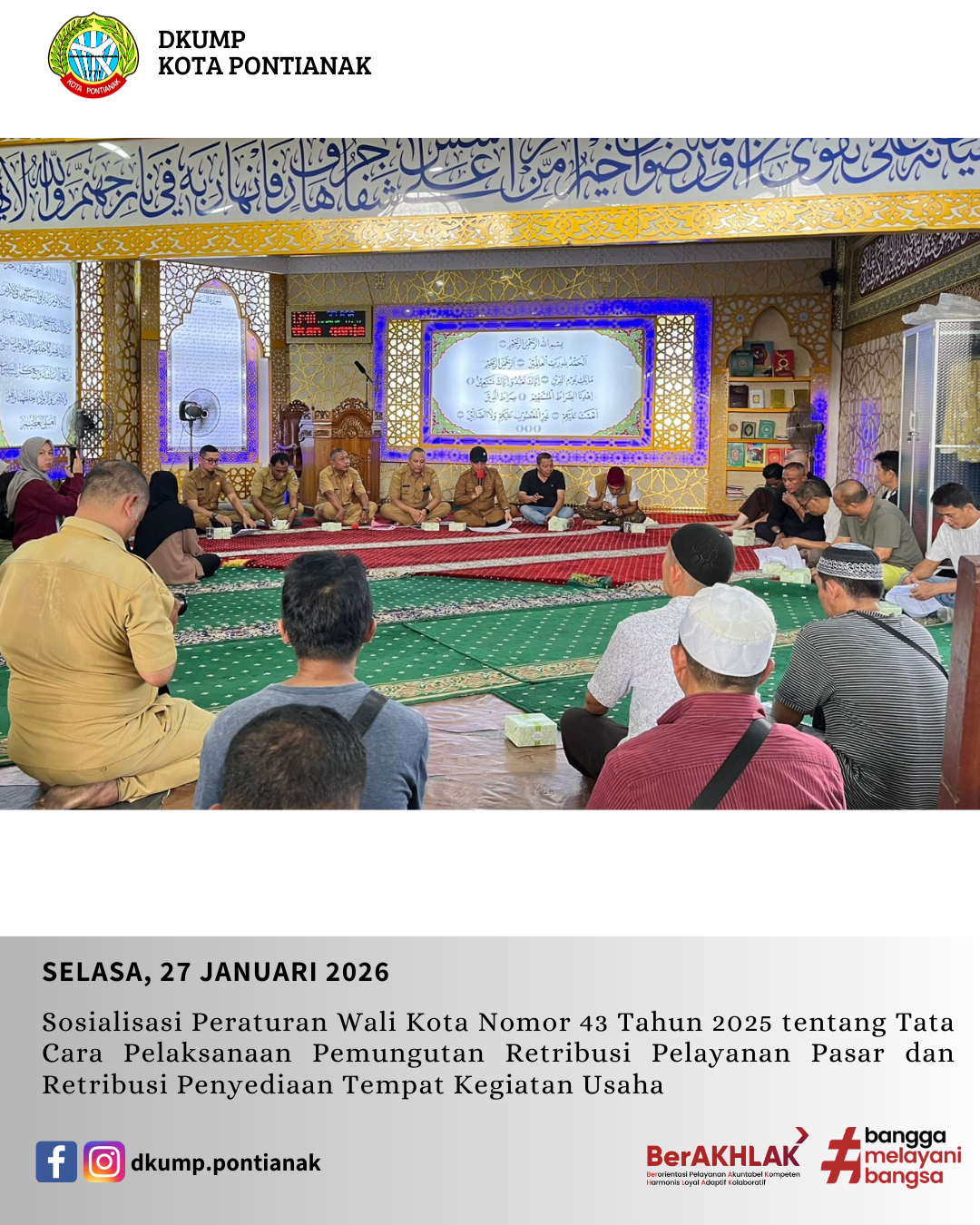 Sosialisasi Peraturan Wali Kota Nomor 43 Tahun 2025 tentang Tata Cara Pelaksanaan Pemungutan Retribusi Pelayanan Pasar dan Retribusi Penyediaan Tempat Kegiatan Usaha.