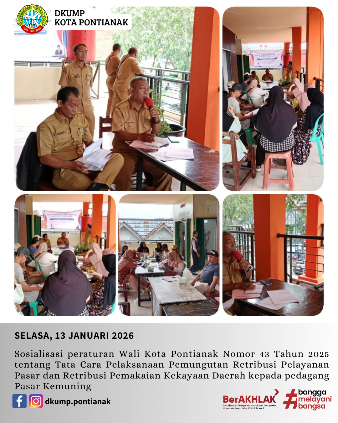 Sosialisasi peraturan Wali Kota Pontianak Nomor 43 Tahun 2025 tentang Tata Cara Pelaksanaan Pemungutan Retribusi Pelayanan Pasar dan Retribusi Pemakaian Kekayaan Daerah kepada pedagang Pasar Kemuning