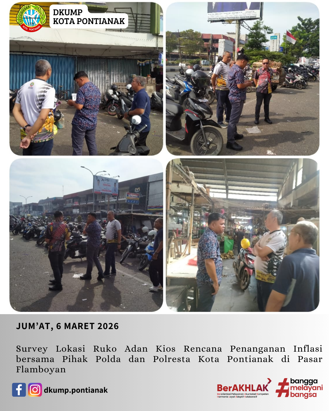 Survey Lokasi Ruko Adan Kios Rencana Penanganan Inflasi bersama Pihak Polda dan Polresta Kota Pontianak di Pasar Flamboyan.
