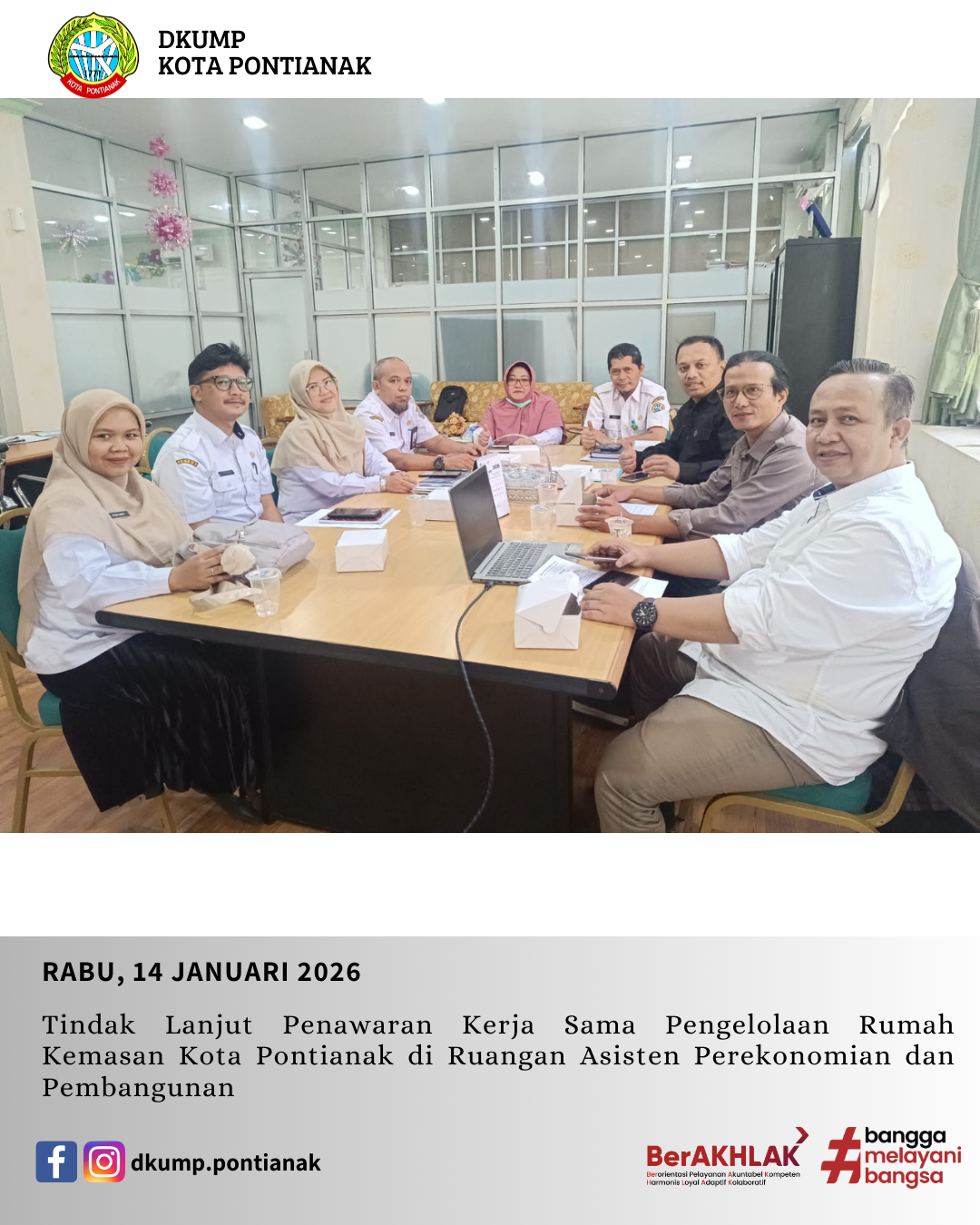 Tindak Lanjut Penawaran Kerja Sama Pengelolaan Rumah Kemasan Kota Pontianak di Ruangan Asisten Perekonomian dan Pembangunan